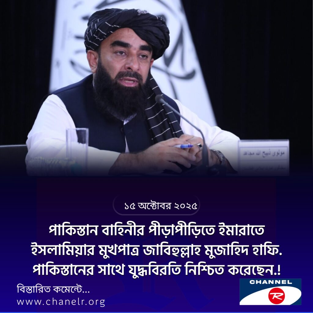 ব্রেকিং: ইমারাতে ইসলামিয়ার মুখপাত্র জাবিহুল্লাহ মুজাহিদ পাকিস্তানের সাথে যুদ্ধবিরতি নিশ্চিত করেছেন।ইমারাতে ইসলামিয়ার মুখপাত্র জাবিহুল্লাহ মুজাহিদ ঘোষণা করেছেন যে আজ বিকেল ৫:৩০ টার পর আফগানিস্তান ও পাকিস্তানের মধ্যে যুদ্ধবিরতি কার্যকর হবে।তিনি বলেছেন যে বারবার অনুরোধের প্রেক্ষিতে এই যুদ্ধবিরতি কার্যকর হয়েছে।
